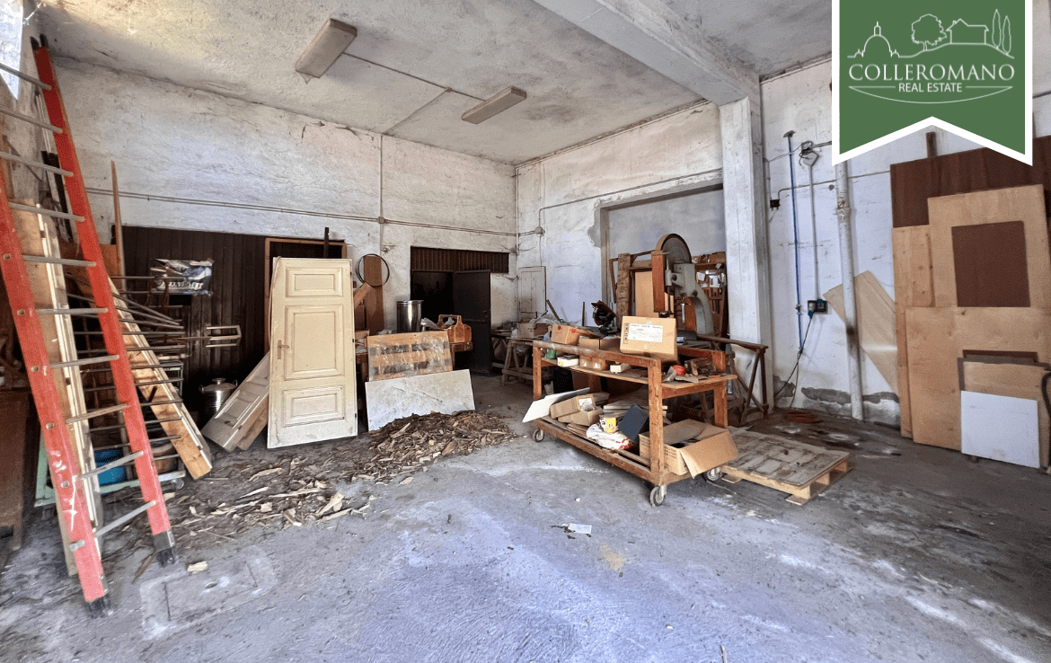 L’immobile è composto da un appartamento al piano terra, un secondo appartamento al primo piano, oltre ad un un garage e un’officina laboratorio al piano -1 parzialmente fuori terra.